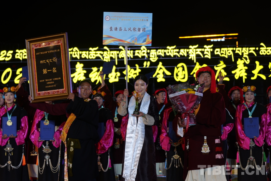 經(jīng)過激烈角逐,青海省玉樹州囊謙縣土風(fēng)歌舞團(tuán)摘得本次大賽的冠軍?!拔磥?,我們將帶著這份沉甸甸的榮譽(yù)繼續(xù)前行,用心打磨每一個(gè)動(dòng)作、每一段旋律,力求把最具民族韻味、最富感染力的鍋莊舞蹈作品,呈現(xiàn)給更多觀眾。”囊謙縣土風(fēng)歌舞團(tuán)團(tuán)長才仁更尕獲獎(jiǎng)后的激動(dòng)之情溢于言表。