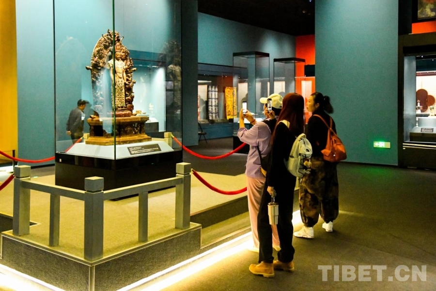 圖為西藏博物館內(nèi)“祥開萬象——故宮與西藏文物聯(lián)展”受到市民游客歡迎 攝影:王勇