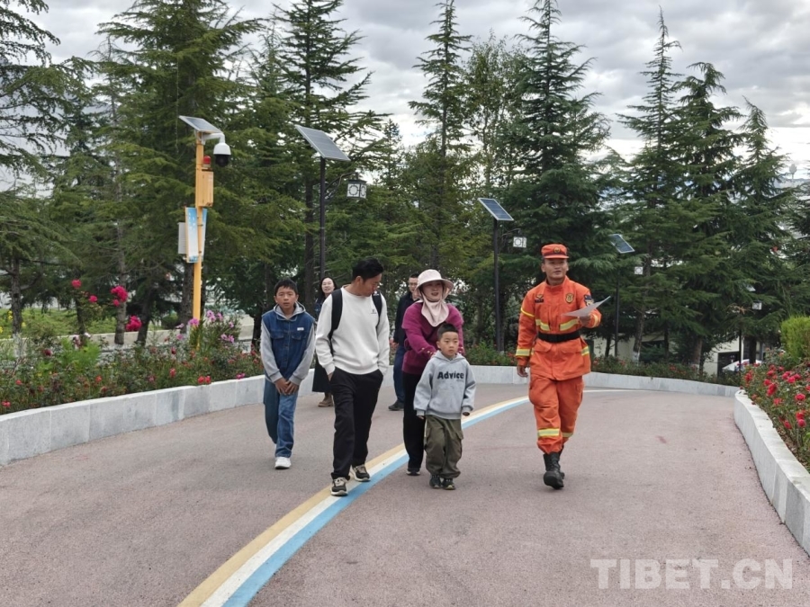 圖為雙節(jié)期間森林消防員在拉薩南山公園組織開(kāi)展森林防火宣傳活動(dòng),旨在增強(qiáng)游客防火意識(shí),共同守護(hù)綠色家園 攝影:丁浩