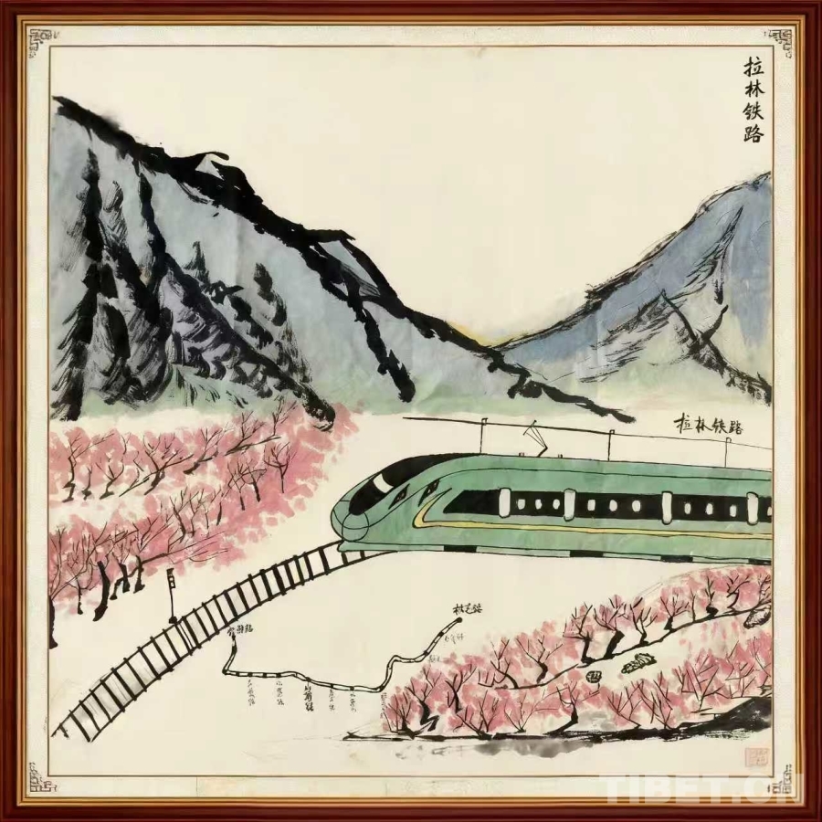 圖為李杰盛創(chuàng)作的拉林鐵路主題作品