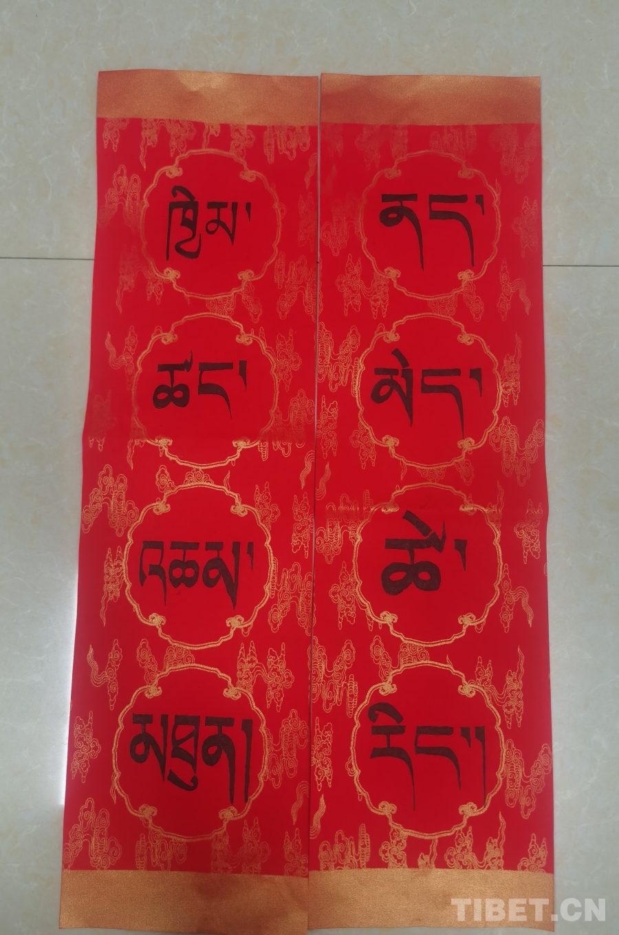 圖為李杰盛在春節(jié)期間為出行旅客撰寫的藏文春聯(lián)