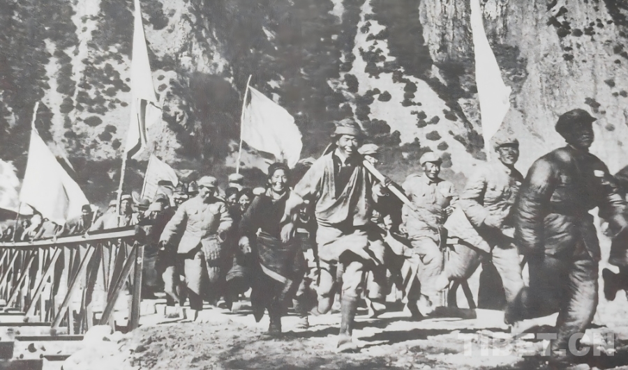 1951年10月,人民解放軍正式進駐拉薩,隨著各項工作穩(wěn)步推進,局勢趨于穩(wěn)定。西藏工委、西藏軍區(qū)同西藏地方政府協(xié)商加快修建康藏公路的問題,于1952年在拉薩成立第一工程局(后改為第一施工局),1953年1月筑路委員會成立,下設(shè)西線筑路指揮部。進藏部隊、地方干部與各族民工(西線筑路大軍)從拉薩出發(fā),先打通拉薩河南岸至墨竹工卡的山路,再頂著米拉山口的暴風(fēng)雪鋪筑路基,一點點將公路向著巴河的方向延伸。兩支筑路大軍隔著雪山峽谷,卻以同樣的堅韌,在高原上刻下屬于中國人的英勇無畏!