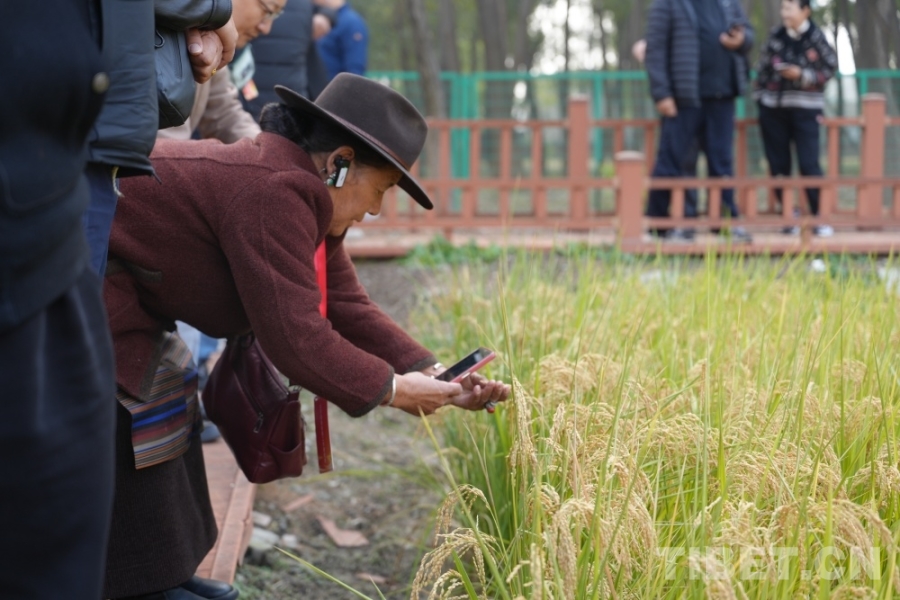 秋風(fēng)送爽,稻穗低垂,隨風(fēng)搖曳。在曾是清代皇家御田的北京市海淀區(qū)上莊鎮(zhèn)京西稻保護(hù)性種植區(qū),來(lái)自林芝市波密縣的40名基層干部沿木質(zhì)棧道近距離觀察豐收的稻田,也在文化走廊掃碼,了解京西稻的歷史脈絡(luò)與特色優(yōu)勢(shì)。