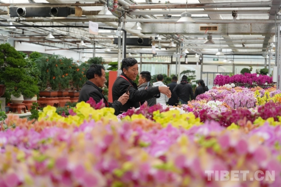 圖為西藏基層干部學(xué)習(xí)參觀團(tuán)成員參觀花卉市場(chǎng) 攝影:王茜