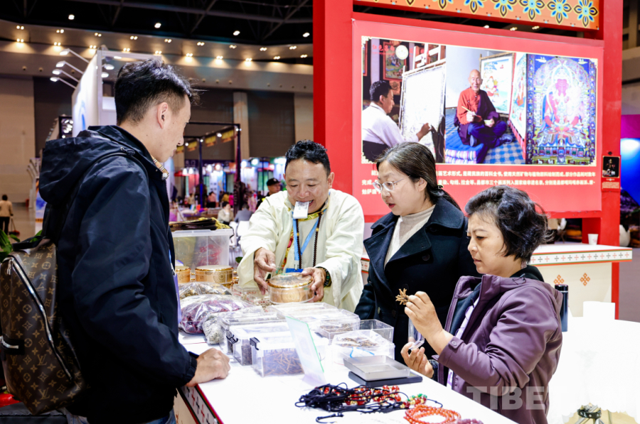 記者走進昌都展館,整個展館呈現(xiàn)藏族傳統(tǒng)建筑的典型特征,厚重的墻體、錯落有致的布局以及富有層次感的屋頂線條,精心融入康巴文化符號。昌都文旅攜9家非遺企業(yè),全方位展示唐卡、藏香、唐卡漆畫、民族手工飾品、蟲草、貝母、藏紅花等琳瑯滿目的文旅產(chǎn)品,進館參與互動、咨詢的游客絡(luò)繹不絕。
