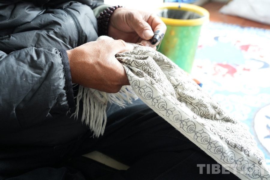 圖為合作社員工在做精美刺繡,編織這條刺繡圍巾需耗費(fèi)一個(gè)月之久 攝影:張藝彤