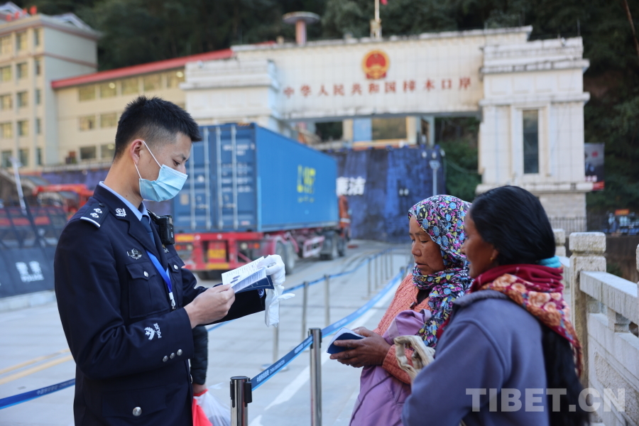 圖為聶拉木邊檢站民警對(duì)出入境人員的證件進(jìn)行抽檢
