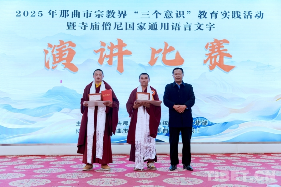 中國(guó)西藏網(wǎng)訊 11月13日,2025年那曲市宗教界“三個(gè)意識(shí)”教育實(shí)踐暨寺廟僧尼國(guó)家通用語(yǔ)言文字演講比賽舉行。來(lái)自那曲市10縣(區(qū))的22名寺廟僧尼站在演講臺(tái)上,用流利的普通話(huà)暢談學(xué)習(xí)心得、分享家鄉(xiāng)發(fā)展變化。
