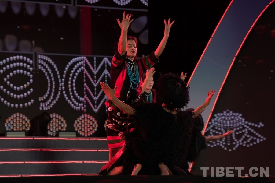 在開幕式文藝晚會上,墨脫縣藝術(shù)團(tuán)作為晚會的“文化使者”,通過五支特色舞蹈,將墨脫的民族文化與精神風(fēng)貌展現(xiàn)得淋漓盡致:開場舞《相約墨脫》中,舞者身著門巴族、珞巴族服飾,激昂的舞步與悠揚旋律交織,瞬間將觀眾帶入“蓮花秘境”的冬日幻境;《靈動門珞》以肢體語言為筆,生動重現(xiàn)門巴族織錦時的細(xì)膩指尖、珞巴族狩獵時的矯健身姿,剛?cè)岵?jì)的動作勾勒出兩個民族千年生活圖景,贏得現(xiàn)場掌聲雷動。