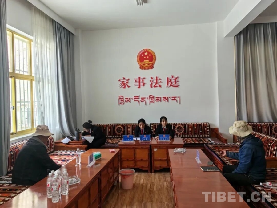 圖為珠峰人民法庭調(diào)解鄰里糾紛