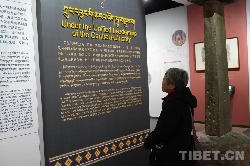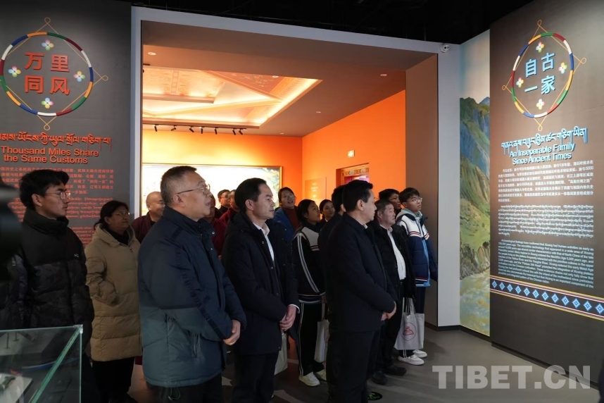 鄭堆在致辭中指出,西藏自古以來(lái)就是中國(guó)不可分割的一部分,一系列遺址、文物、檔案、文獻(xiàn)串聯(lián)起的歷史證據(jù)鏈,確鑿印證西藏與祖國(guó)同源同流、血脈相連,充分證明了中華民族共同體的形成和發(fā)展是人心所向、大勢(shì)所趨、歷史必然。中國(guó)藏學(xué)研究中心作為中國(guó)藏學(xué)研究的國(guó)家隊(duì),自成立以來(lái)始終堅(jiān)持“為維護(hù)祖國(guó)統(tǒng)一,加強(qiáng)民族團(tuán)結(jié)服務(wù);為西藏和四省涉藏州縣發(fā)展穩(wěn)定服務(wù)”的宗旨,圍繞西藏的歷史法律地位、西藏地方與祖國(guó)關(guān)系史、歷代中央政府治藏政策等進(jìn)行了全面、深入的研究,為中華民族發(fā)展史研究夯實(shí)了堅(jiān)實(shí)的基礎(chǔ)。藏研中心集全國(guó)藏學(xué)研究之力,先后完成了《西藏通史》和《西藏文化史》等重大項(xiàng)目,分別以八卷的體量、上千萬(wàn)字的篇幅系統(tǒng)論證了西藏自古以來(lái)是中國(guó)不可分割的一部分,西藏文化是中華文化不可分割的有機(jī)組成部分。同時(shí),扎實(shí)推動(dòng)了《西藏早期文明史研究》《元以來(lái)西藏地方與中央政府關(guān)系研究》等重點(diǎn)課題,整理出版了《元以來(lái)西藏地方與中央政府關(guān)系檔案史料匯編》《中國(guó)第二歷史檔案館所存西藏和藏事檔案匯編》《中華大典·藏文卷》等一系列檔案文獻(xiàn)和史籍著作,為系統(tǒng)梳理西藏與其他民族和地區(qū)交往交流交融的歷史,推進(jìn)中華民族發(fā)展史研究夯實(shí)了扎實(shí)的史料基礎(chǔ),也使今天的展覽擁有了雄厚的研究基礎(chǔ)。從自在到自覺(jué),中華民族從千萬(wàn)年的榮辱興衰中攜手走來(lái);從“社稷如一”到“書(shū)寫(xiě)美麗西藏新篇章”,西藏的命運(yùn)始終與中華民族大家庭緊密相連。歷史鑄就的共同體,充分彰顯了中華民族國(guó)土不可分、國(guó)家不可亂、民族不可散、文明不可斷的共同信念。新時(shí)代,雪域兒女堅(jiān)信,在中華民族強(qiáng)國(guó)建設(shè)的新征程上,中華民族共同體必然會(huì)在我們的共同奮斗中愈發(fā)牢固。