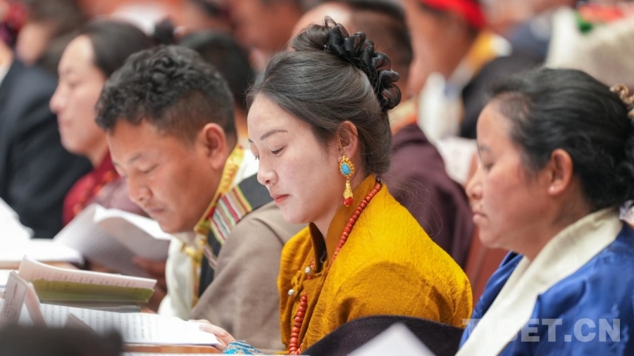 圖為人大代表聽取和審議西藏自治區(qū)高級人民法院工作報告 攝影:賈華加