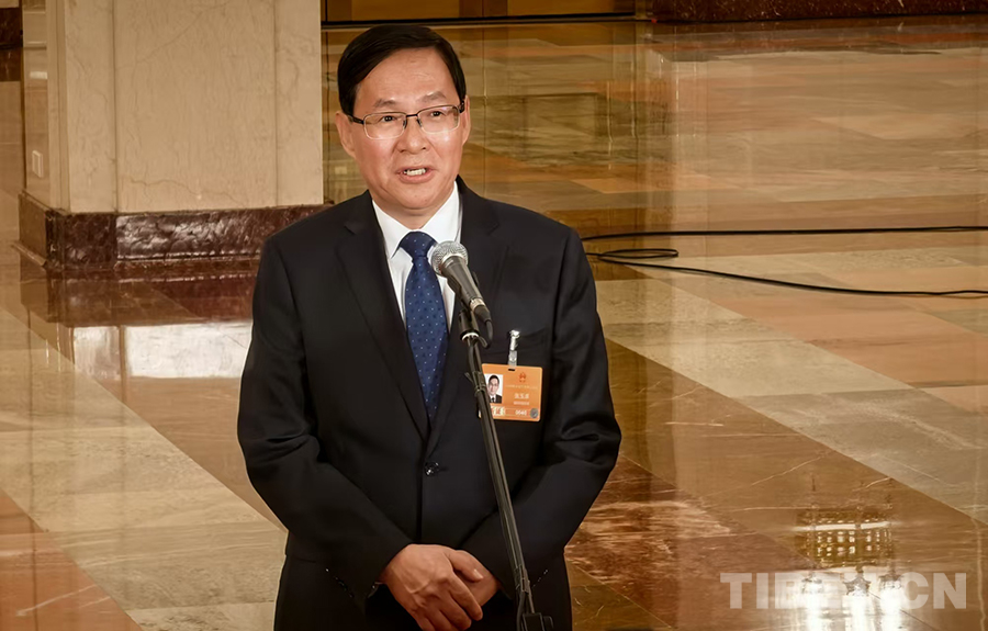 科學(xué)技術(shù)部部長(zhǎng)陰和俊接受媒體采訪 攝影:劉莉