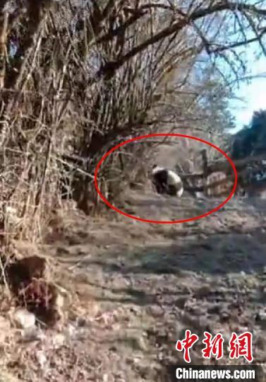 王康忠聞訊后,急忙趕去現場,用手機拍下了短暫的視頻。視頻顯示,這只野生大熊貓正飛快地向山上跑去。