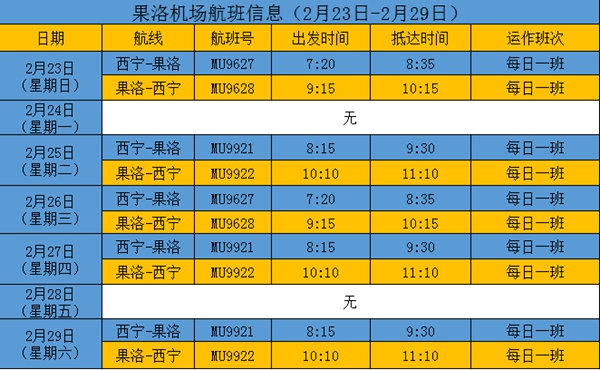 記者從青海機場有限公司果洛機場分公司獲悉,為響應復工復產(chǎn)號召,果洛機場分公司在做好疫情防控的基礎上,經(jīng)與東方航空公司協(xié)商,于2月23日起逐步恢復航線航班。