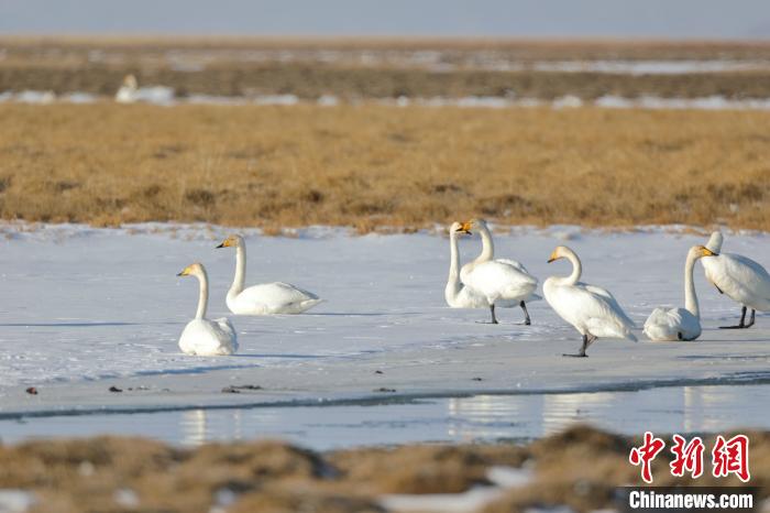 從西伯利亞飛來的大天鵝。若爾蓋縣融媒體中心供圖 攝