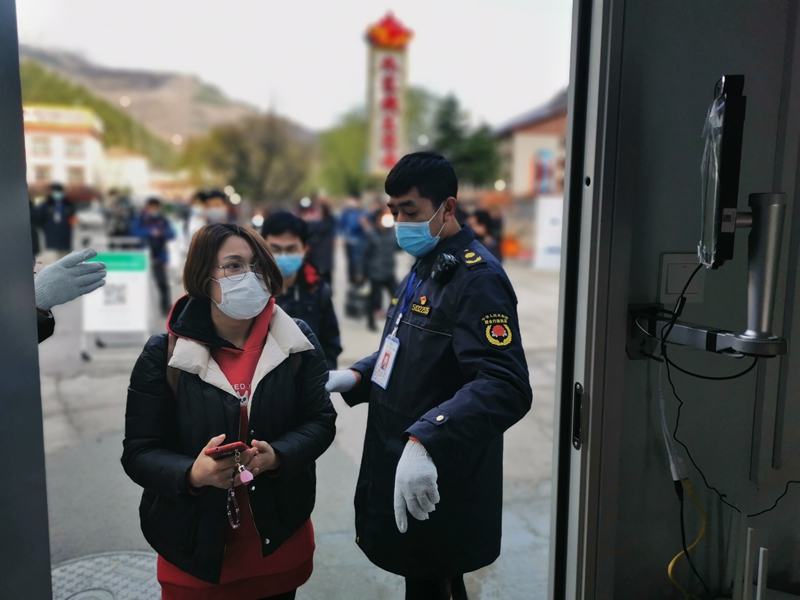 在現場,游客們均按照要求,間隔安全距離排隊。但與以往排隊入園不同的是,現場除了驗票,工作人員還會檢測體溫并檢查有無佩戴口罩。記者了解到,游客將統一在藍天停車場臨時游客中心乘坐觀光車進入景區(qū),且全程必須佩戴口罩,保持安全距離,并服從景區(qū)檢測點體溫檢測等。景區(qū)對未持身份證件和未按規(guī)定佩戴口罩的游客,將按照疫情防控期間相關規(guī)定,拒絕辦理入園手續(xù)。