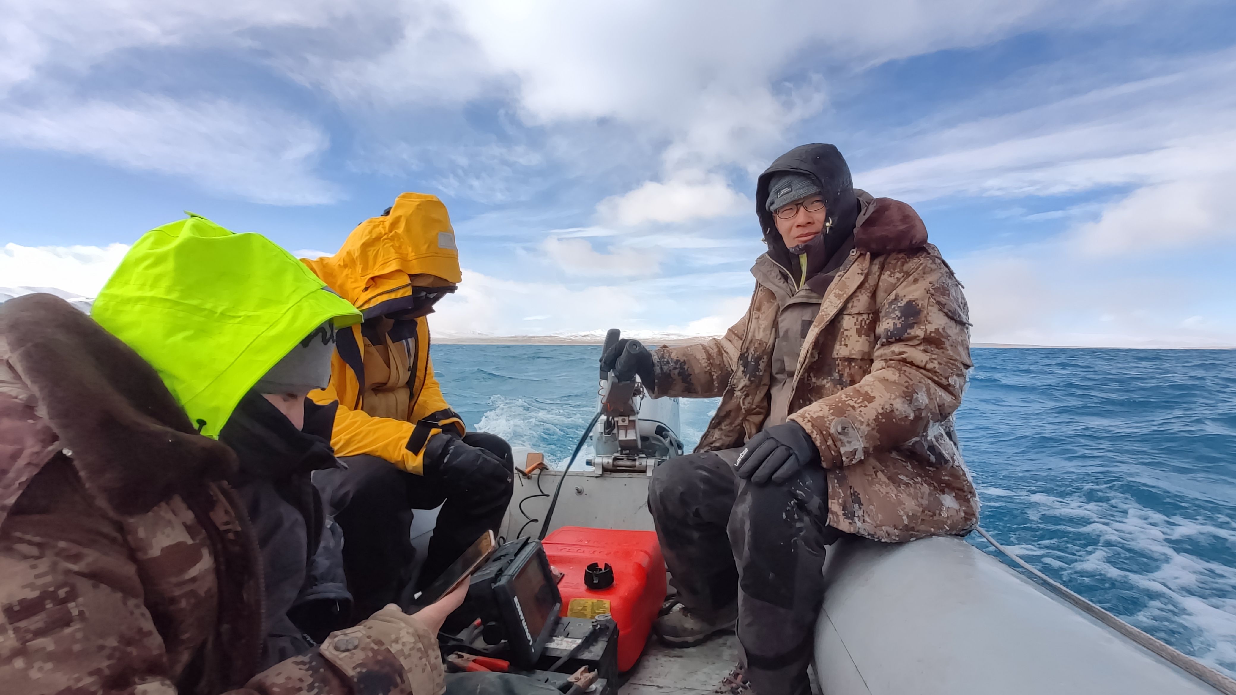 慢慢地,科考隊(duì)掌握了規(guī)律——湖面經(jīng)常下午四五點(diǎn)起風(fēng)。為躲避風(fēng)浪,隊(duì)員們冒著低溫早起工作,下午起風(fēng)的時(shí)候收隊(duì)。如果天氣好,趕上哪天下午沒怎么刮風(fēng),大家就一鼓作氣干到晚上十一二點(diǎn)再回營。