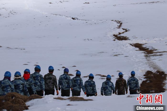 青海省玉樹藏族自治州稱多縣境內(nèi)的覺頂山山頂海拔5310米,“三區(qū)兩州”玉樹地區(qū)電網(wǎng)工程建設(shè)稱多110千伏輸變電二回線路將在這里組立一基鐵塔。4月10日,天剛蒙蒙亮,項目負責人韓建青便帶著施工隊徒步趕向位于半山腰的塔基處。積雪已經(jīng)淹沒了腳踝,一腳踩下去,能清晰的感受到冰雪觸及皮膚帶來的刺痛?!耙氲竭_塔基處可不容易啊,看到我們背的鐵鍬了嗎,那不是挖地的,那是開路用的?!蹦杲?0歲的韓建青氣喘吁吁地說。