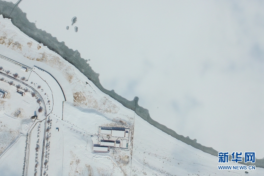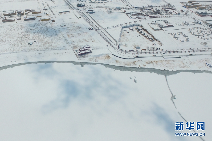 一場春雪,為青海湖披上了潔白的外衣(4月7日攝)。新華網 潘彬彬 攝