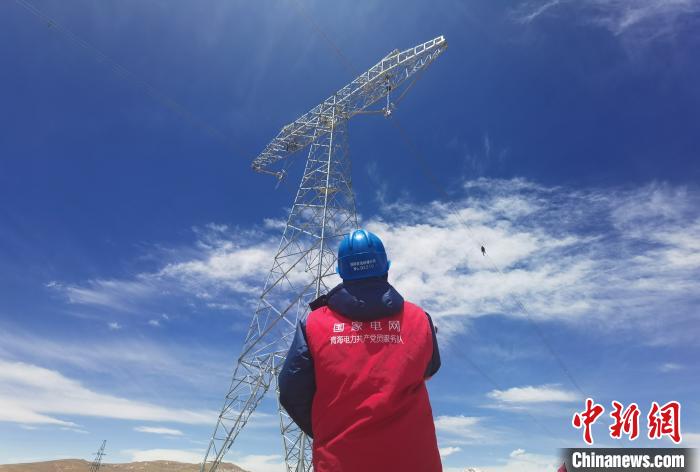 圖為國(guó)網(wǎng)青海檢修公司輸電運(yùn)檢人員對(duì)“電力天路”青藏聯(lián)網(wǎng)工程±400千伏柴拉線開展年度檢修,查找并消除線路缺陷隱患。謝莉蓉 攝