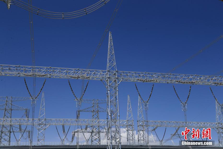 6月23日拍攝的青海省海南藏族自治州共和縣±800千伏特高壓青南換流站內(nèi)的門(mén)型構(gòu)架。中新社記者 馬銘言 攝