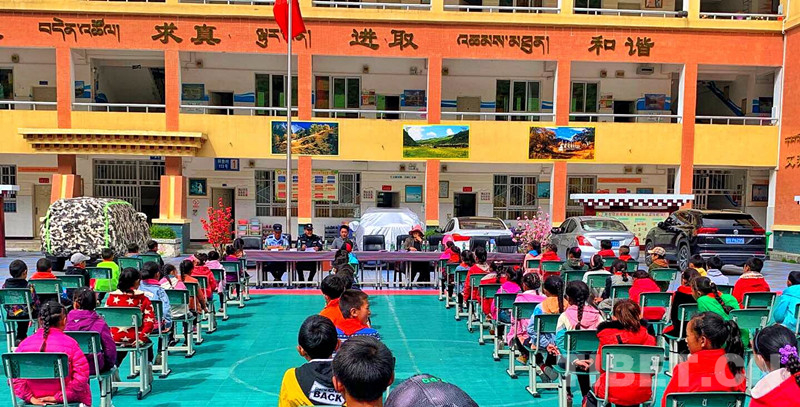 中國西藏網(wǎng)訊 暑期將至,為進一步增強少年兒童的法治意識,營造有利于少年兒童健康成長的和諧氛圍。7月5日、6日四川省甘孜藏族自治州新龍縣公安局沙堆派出所及其所屬的銀多卡點民警先后走進沙堆、銀多鄉(xiāng)小學校,開展“法治進校園,安全記心中”教育普法活動。