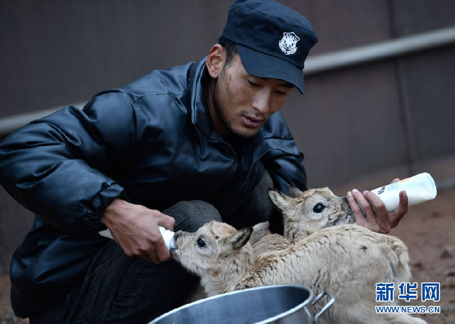 為讓11只藏羚羊幼仔盡快適應(yīng)環(huán)境、健康成長(zhǎng),卓乃湖保護(hù)站安排專人,在特定區(qū)域?qū)ζ溥M(jìn)行喂養(yǎng)。記者在卓乃湖保護(hù)站看到,每日早、中、晚,巡山隊(duì)員才文多杰會(huì)按時(shí)給小藏羚羊喂奶,每只小藏羚羊都有自己的“專用”奶瓶。