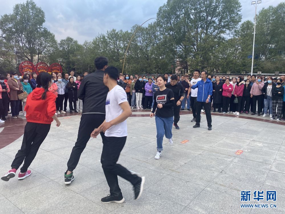 在青海省海北藏族自治州海晏縣西海鎮(zhèn)文化廣場,當?shù)厝罕娫谂e行跳繩比賽(7月6日手機拍攝)。新華社記者 張子琪 攝