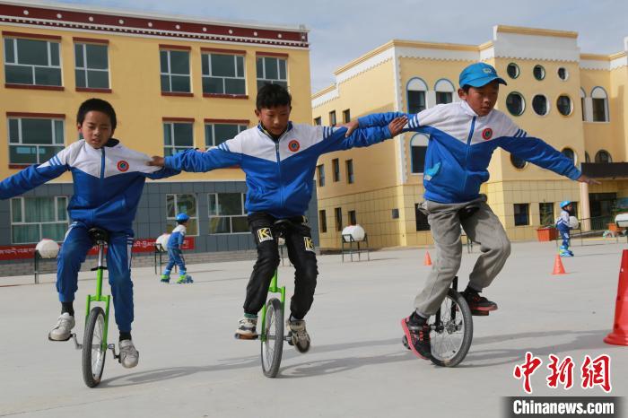 圖為鄉(xiāng)村學(xué)校少年宮的孩子們正在騎獨(dú)輪車(chē)。才讓本 攝