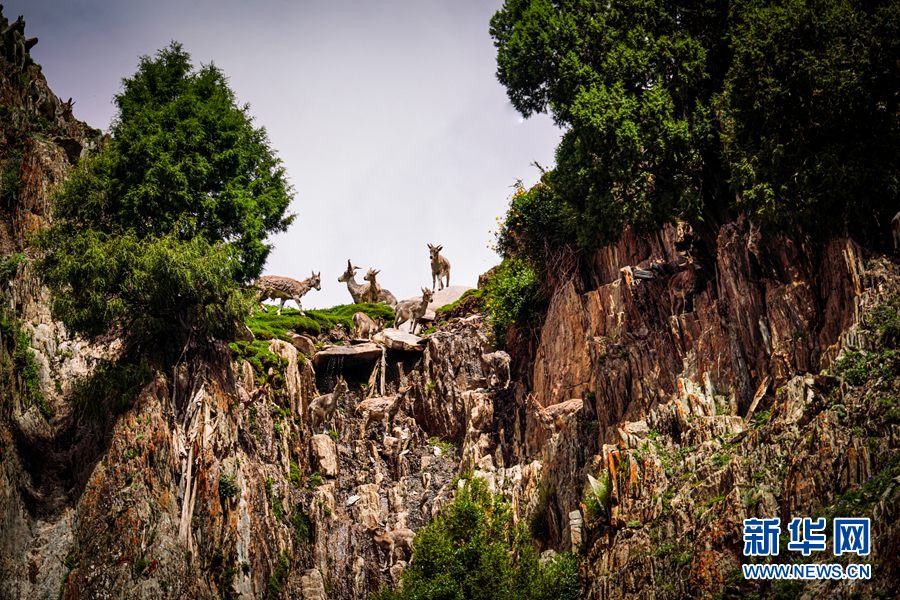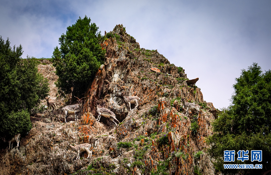 一群巖羊在巖壁上嬉戲。新華網 宋忠勇 攝