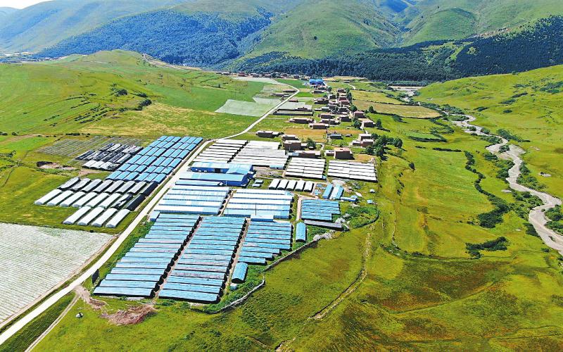 8月19日航拍的阿壩縣高原中低溫食用菌基地。該基地年創(chuàng)產值達2500余萬元,常年解決貧困農牧民就業(yè)200余人。肖雨楊 攝