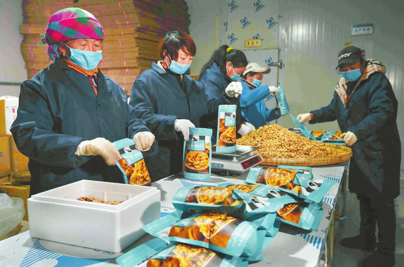 在涼山州木里縣藏祥閣農特產品商貿有限公司,工人們正在熟練地為核桃裝袋。近年來,通過電商銷售,木里的農特產品成為網上暢銷商品,既為農民脫貧、增收開拓了新路,又滿足了現代人對農村原生態(tài)農產品的消費需求。尹鋼 攝(資料圖片)