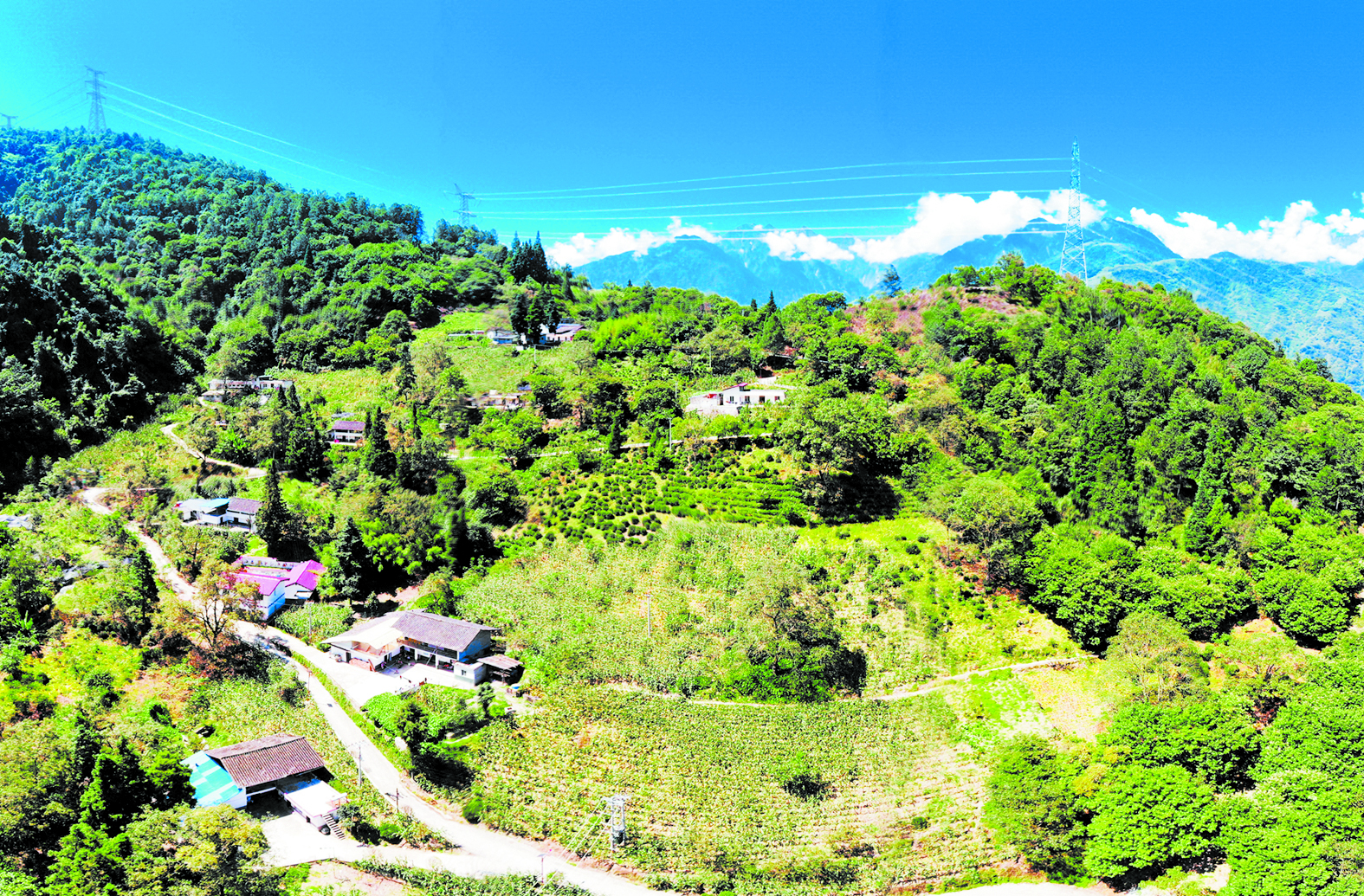 從奔騰的大渡河谷一路向上,海拔1800多米的甘孜州瀘定縣得妥鎮(zhèn)紫雅場(chǎng)村,樹(shù)林連綿成片,山頂云霧繚繞,山坡上的茶園反射著陽(yáng)光,在藍(lán)天的映襯下格外青翠。