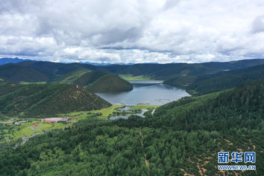 航拍視角下的普達措“幾”字形河道(攝于8月27日)。新華網(wǎng) 趙普凡 攝