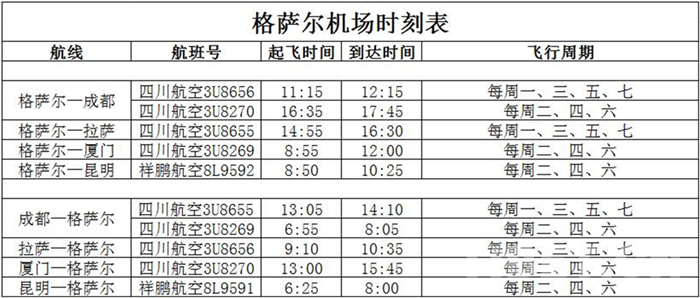 新航線開(kāi)通后,甘孜格薩爾機(jī)場(chǎng)在飛的往返航線已有成都、拉薩、廈門、昆明,目前航線網(wǎng)絡(luò)正逐步完善加密。