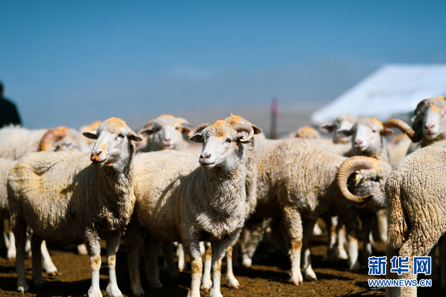 圖為金泰牧場(chǎng)內(nèi)的茶卡羊。新華網(wǎng) 郭勇良 攝