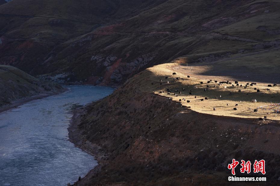 10月15日,位于青海省雜多縣扎青鄉(xiāng)的瀾滄江源頭如油畫般的風(fēng)景。圖為瀾滄江源頭的一個(gè)牧場(chǎng)。中新社記者 蘇丹 攝
