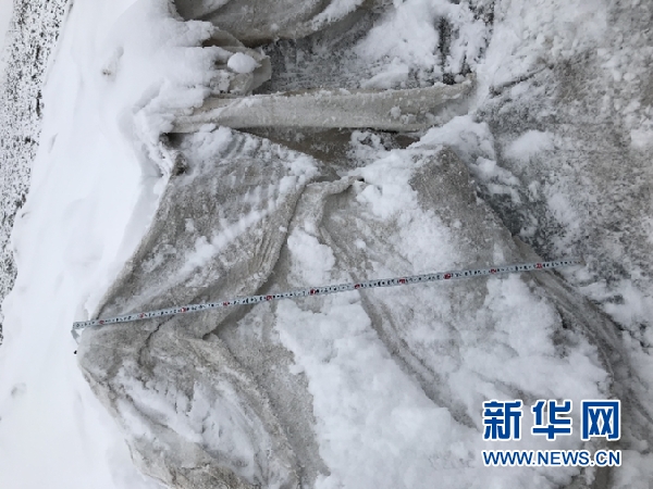 王飛騰團(tuán)隊(duì)發(fā)現(xiàn),“蓋被子”區(qū)域的冰體消融速度減緩。“‘蓋被子’的地方比不‘蓋被子’的地方冰的厚度高了一米,這高出來(lái)的一米就是‘蓋被子’的效果。”王飛騰介紹。