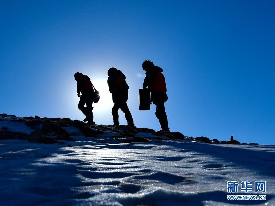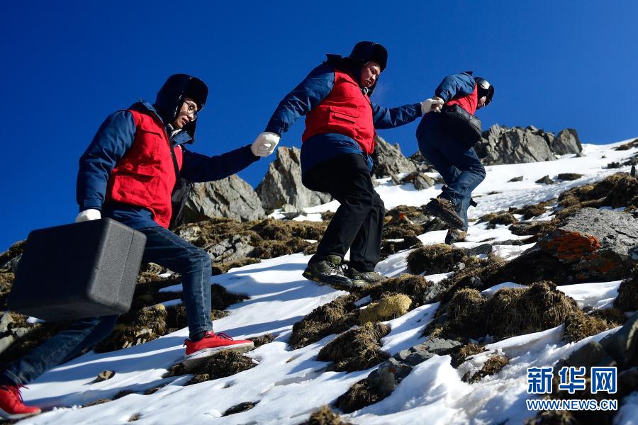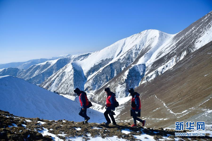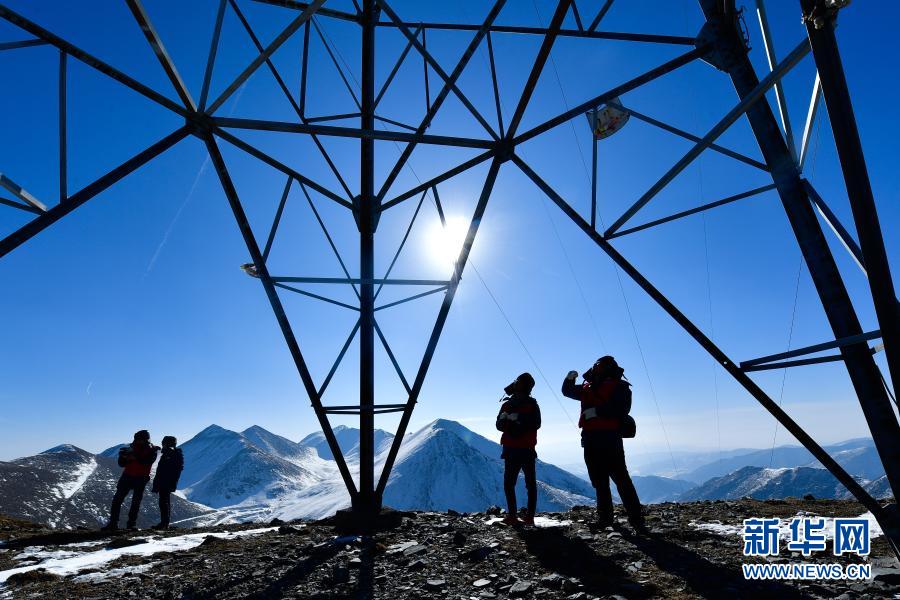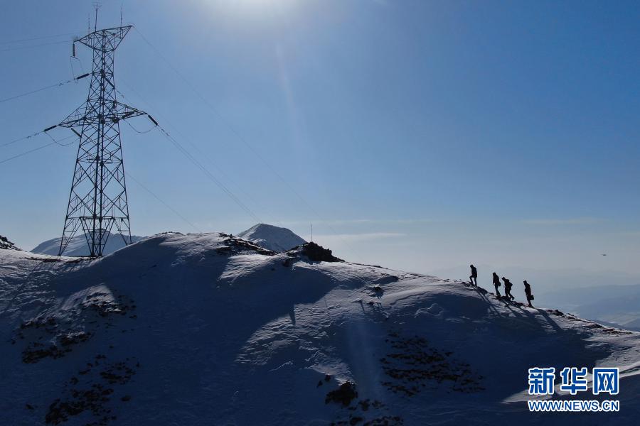 1月21日,國(guó)家電網(wǎng)西寧供電公司輸電運(yùn)檢中心運(yùn)檢人員在登山巡檢。新華社記者 張龍 攝