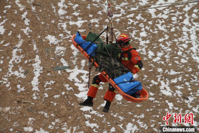 圖為玉樹州消防救援支隊(duì)進(jìn)行斜下救助。陳強(qiáng) 攝