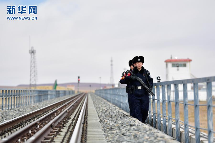 2月4日,沱沱河站派出所巡線民警在唐古拉站巡查。新華社記者 張龍 攝
