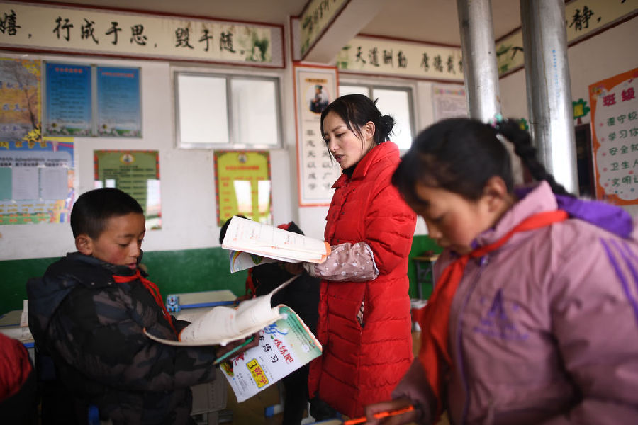 3月16日,索加鄉(xiāng)寄宿小學藏語文老師白瑪在為學生授課。新華社記者 韓方方 攝