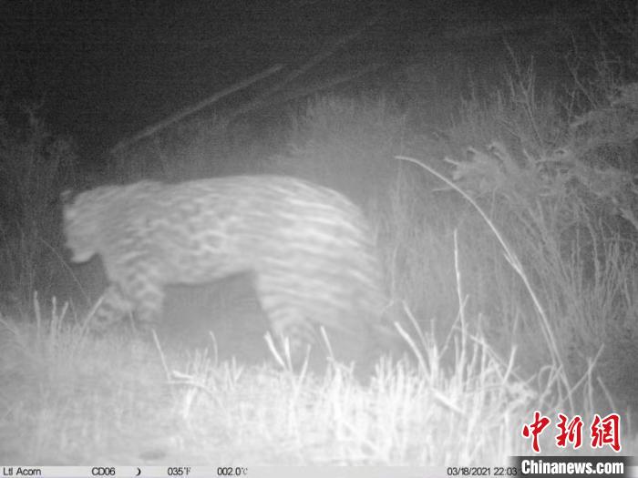 記者26日從青海省玉樹州稱多縣公安局森林警察大隊獲悉,23日,稱多縣公安局森林警察大隊紅外監(jiān)控系統(tǒng)再次監(jiān)測到國家一級保護動物金錢豹的活動畫面。這是繼2020年3月監(jiān)測到金錢豹后,稱多縣境域內(nèi)第二次監(jiān)測到該動物的畫面,也是畫面最完整的一次。