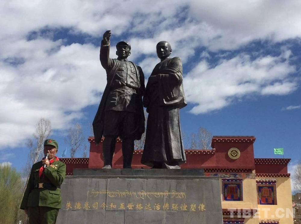 圖為洛絨志麥在烈士雕塑前給學(xué)生講英烈故事 攝影:葉強(qiáng)平