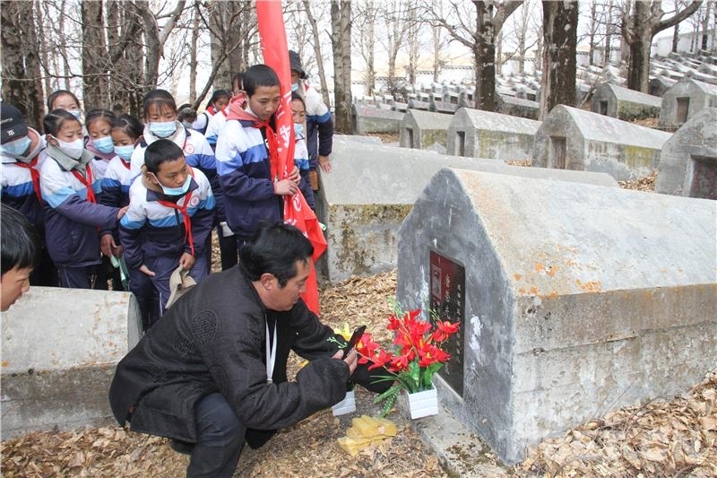 “今天同學(xué)們來祭奠烈士,給烈士們獻(xiàn)花和掃墓,我正在給他們講烈士的故事?!甭褰q志麥用手機(jī)與唐榮光烈士親屬王世林視頻通話。每逢清明、烈士紀(jì)念日、愛國(guó)主義教育活動(dòng)等,全縣各級(jí)干部職工、中小學(xué)生和廣大人民群眾都要前往陵園,舉行掃墓和憑吊活動(dòng),緬懷英勇獻(xiàn)身的革命烈士,洛絨志麥就成了志愿講解員,讓烈士精神代代相傳。