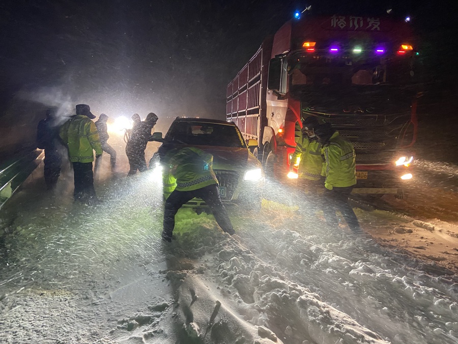 青海瑪多大雪致多車被困 -30℃交警緊急救援