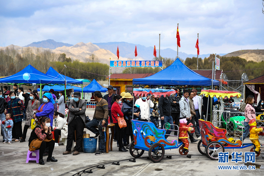 圖為貴德縣水車廣場(chǎng)的兒童游樂園。新華網(wǎng) 潘彬彬 攝