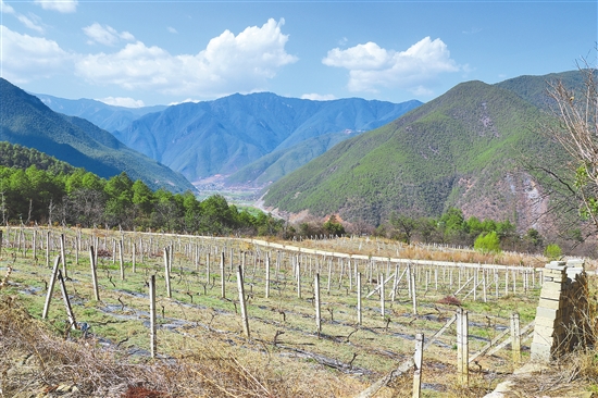 在德欽縣云嶺鄉(xiāng)斯農(nóng)村,從房前屋后直到高山腳下,整齊的葡萄架綿延成片,種植面積已達1035畝。從2012年起,香格里拉酒業(yè)和梅里酒莊等企業(yè)和該村達成長期合作,小葡萄成了184戶村民的“致富果”。