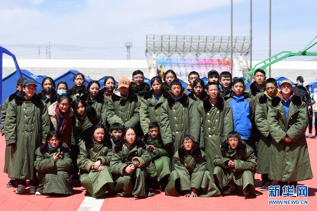 為準備復課第一天的升旗儀式,八年級一班的格群、才普、索才、邁昂4名同學,手舉國旗,在操場上一遍遍排練著升旗儀式動作要領(lǐng)。